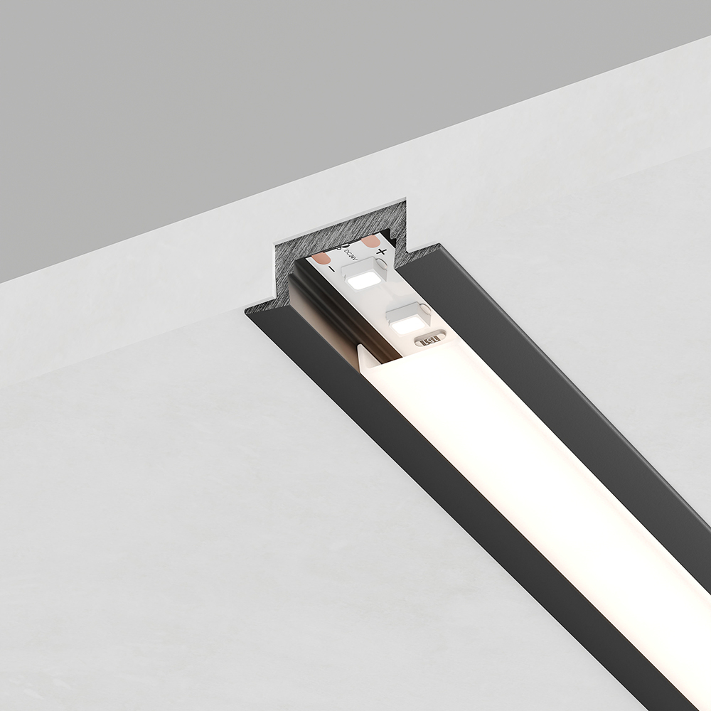 Профиль встраиваемый для светодиодной ленты FERON CAB251 «встраиваемый», цвет черный, в комплекте 2 заглушки, экран, 2000*22*6мм..