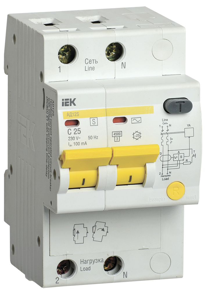 Автоматический выключатель дифференциального тока на номинальный ток 25 А и номинальный отключающий дифференциальный ток 30 мА.4600572679145..