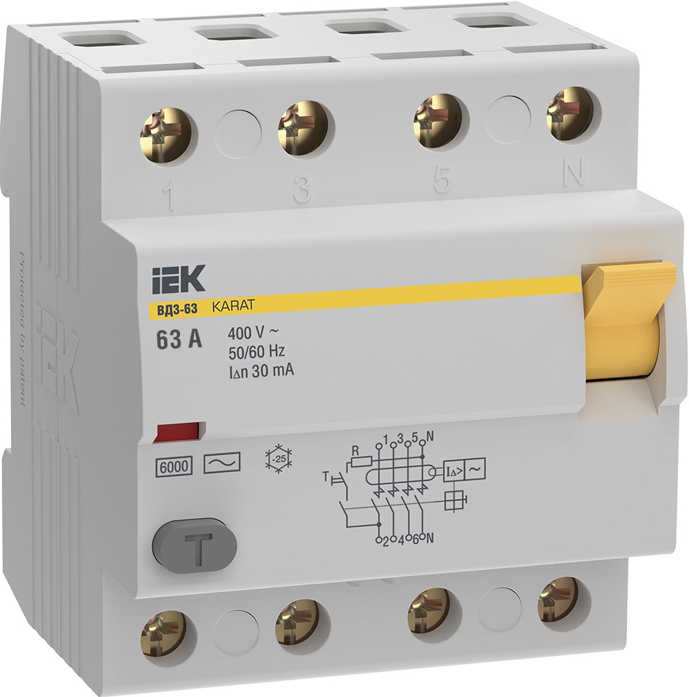 Выключатель дифференциального тока без встроенной защиты от сверхтоков типа ВД3-63 серии KARAT предназначен для автоматического выключения питания при..