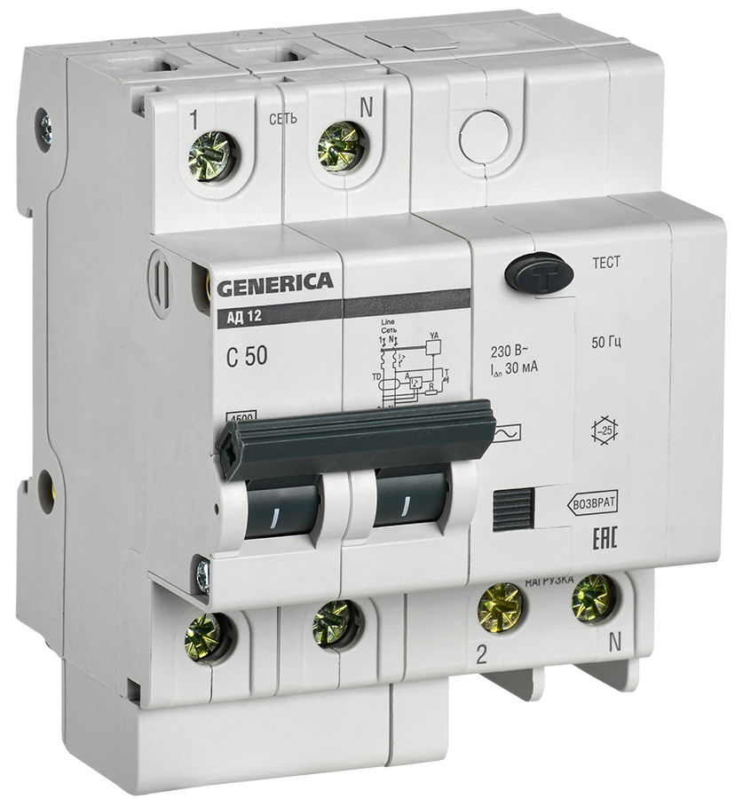 Автоматический выключатель дифференциального тока на номинальный ток 16 А и номинальный отключающий дифференциальный ток 30 мА.4630008684160..