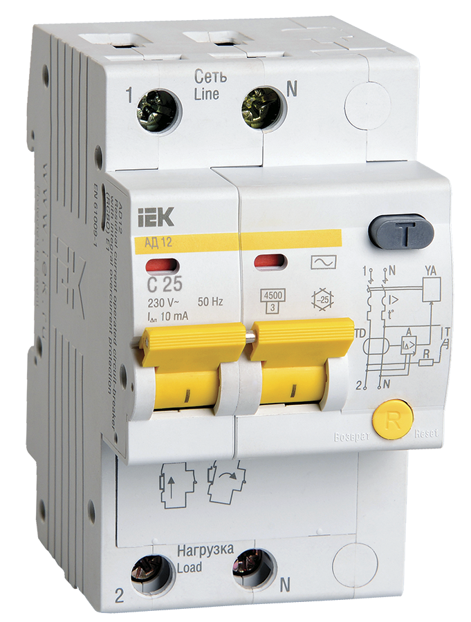 Автоматический выключатель дифференциального тока на номинальный ток 25 А и номинальный отключающий дифференциальный ток 100 мА.4600572313148..
