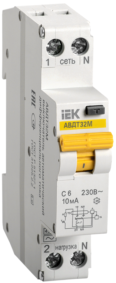 Автоматические выключатели дифференциального тока АВДТ32М для однофазных сетей в одномодульном исполнении (18мм) предназначены для защиты человека от ..