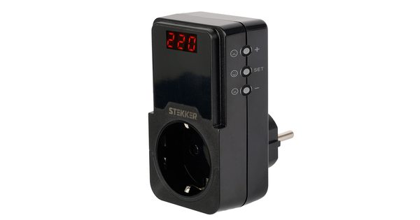 VPR-200B Реле напряжения для розетки регулируемое 230В,16A,черный..