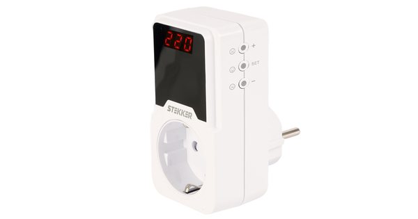 VPR-200W Реле напряжения для розетки регулируемое 230В, 16A,белый..