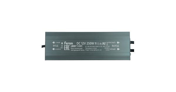 Трансформатор электронный для светодиодной ленты 250W 12V IP67 (драйвер), LB007 FERON..