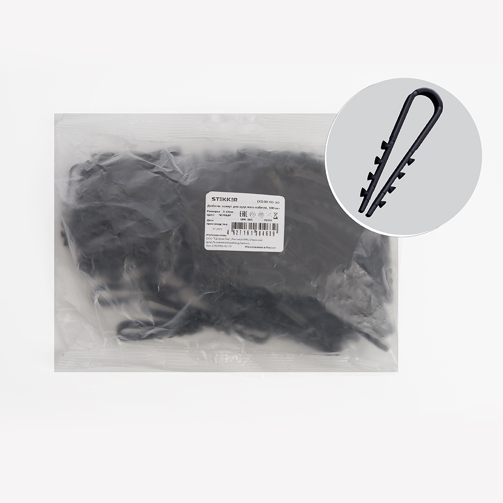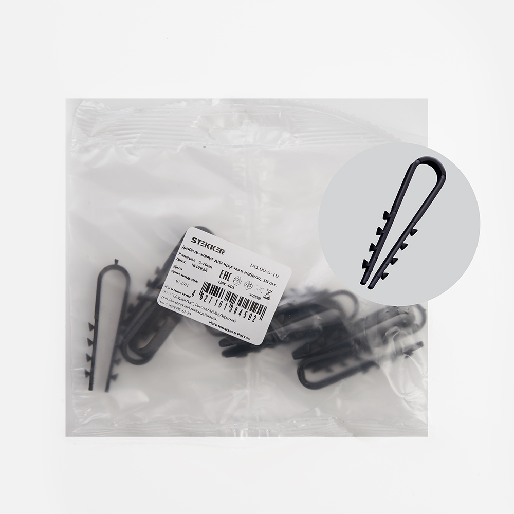 Хомут электромонтажный STEKKER DCL00-05-10, одноразовый, черный, материал - полипропилен, максимальный диаметр пучка - 10мм, нагрузка - -кг, диапазон ..