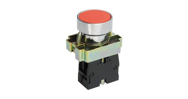 LAY5-ВА42, красный, 1НЗ, цилиндр, хром, без подсветки, d22мм, выключатель кнопочный (ЭТ)..