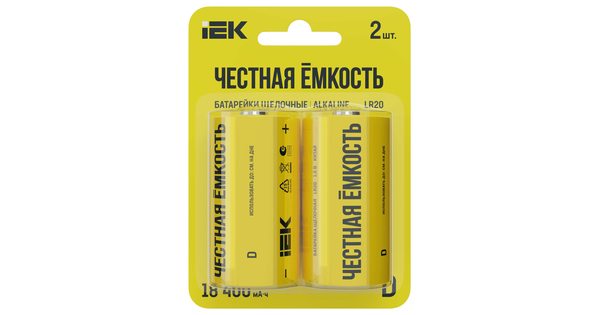 Батарейки щелочные пальчиковые IEK D / LR20, 2 шт. на блистере. IEK применяет технологии, которые позволяют создать батарейки с длительным временем ра..