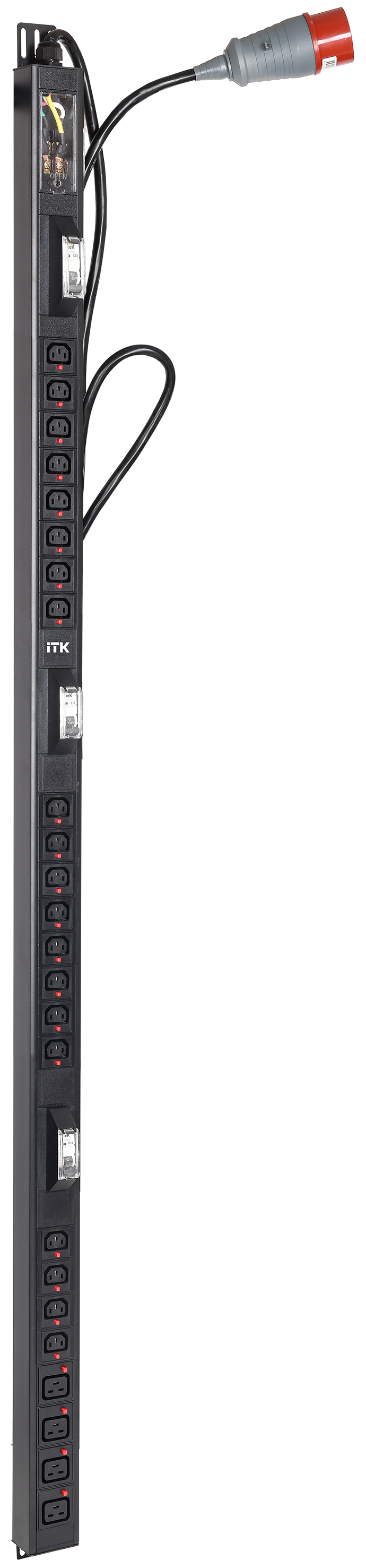 Вертикальный комбинированный блок распределения питания PDU ITK включает в себя розетки двух типов: 20 розеток C13 и 4 розетки C19 – что позволяет под..
