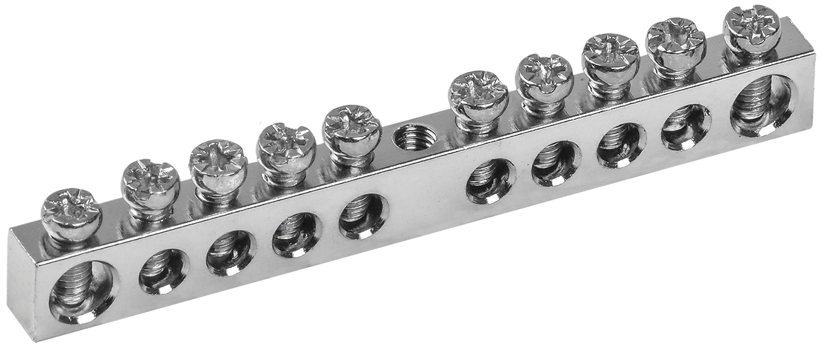 Применяются в щитовом оборудовании для подсоединения нулевых рабочих (N) и нулевых защитных проводов (РЕ). Крепление шины предусмотрено по центру (тип..