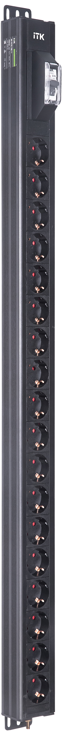Вертикальный однотипный блок распределения питания PDU ITK включает в себя 18 розеток Schuko. PDU ITK изготавливается из высококачественных термостойк..