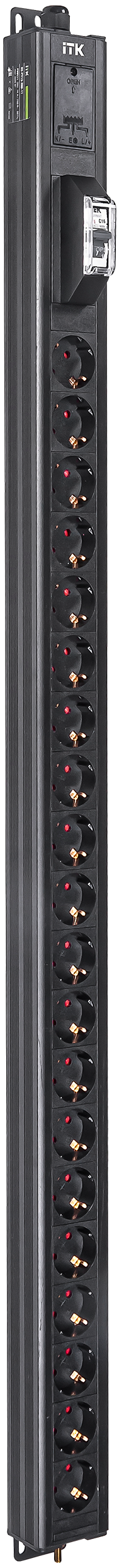 Вертикальный однотипный блок распределения питания PDU ITK включает в себя 20 розеток Schuko. PDU ITK изготавливается из высококачественных термостойк..