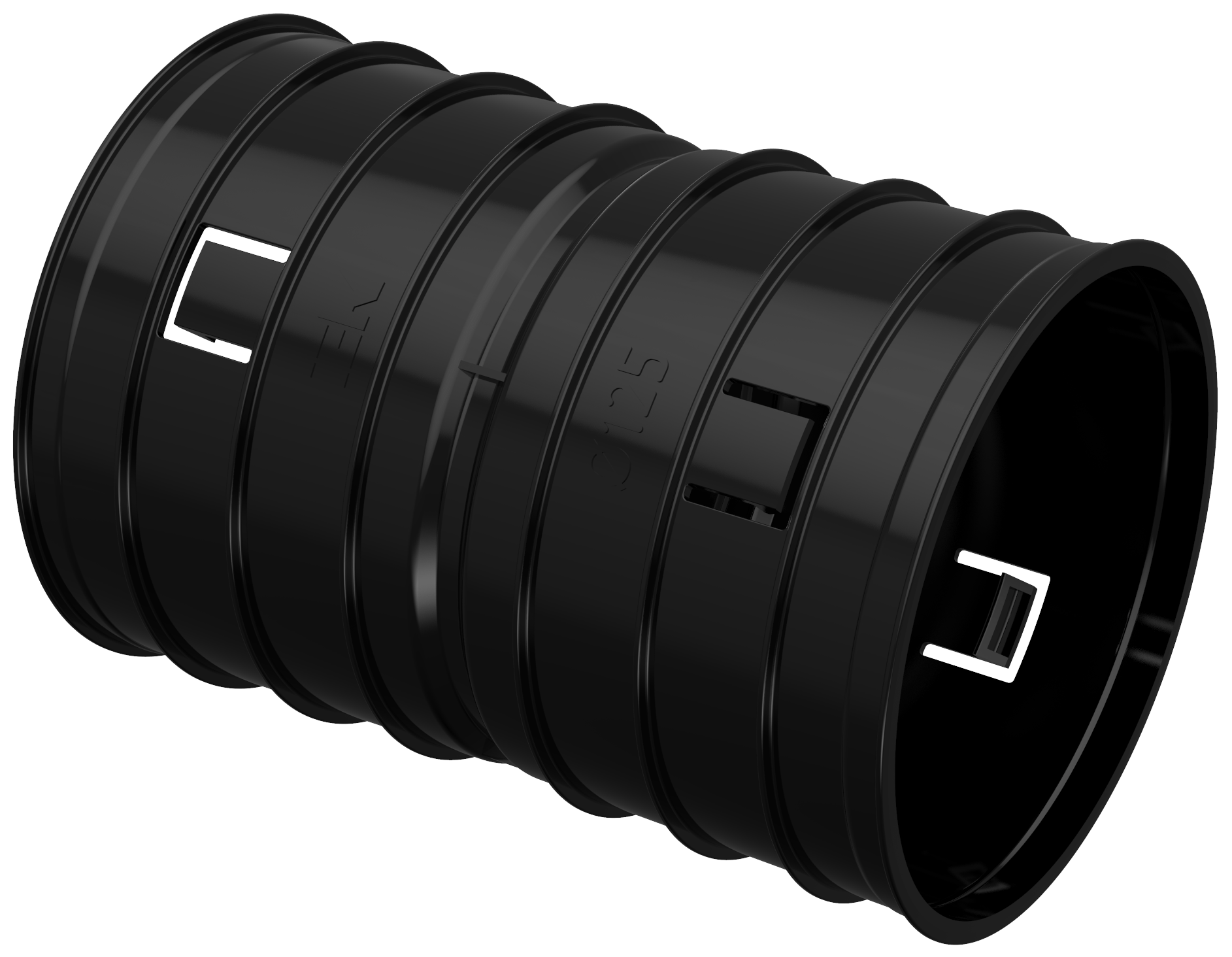 Муфта соединительная для двустенной трубы предназначена для соединения труб одного диаметра.ПреимуществаНадежное соединение и монтаж.Быстрый демонтаж ..