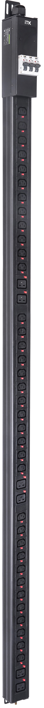 Вертикальный комбинированный блок распределения питания PDU ITK включает в себя розетки двух типов: 36 розеток C13 и 6 розеток C19 – что позволяет под..
