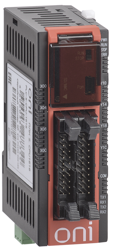Модуль ЦПУ ONI ПЛК S. Встроенные 16 дискретных входов (Sink/Source) и 16 дискретных выходов (транзисторные), интегрированный Ethernet 10/100 Мб 1 кана..