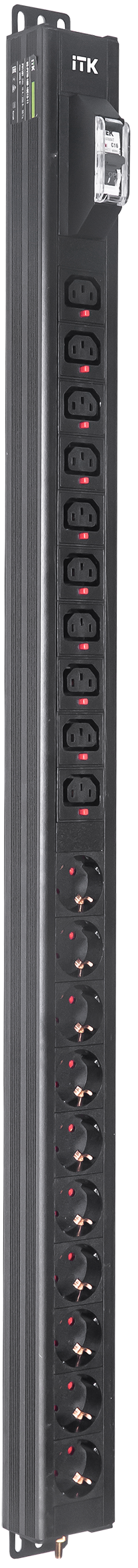 Вертикальный комбинированный блок распределения питания PDU ITK включает в себя розетки двух типов: 10 розеток Schuko и 10 розеток C13 – что позволяет..