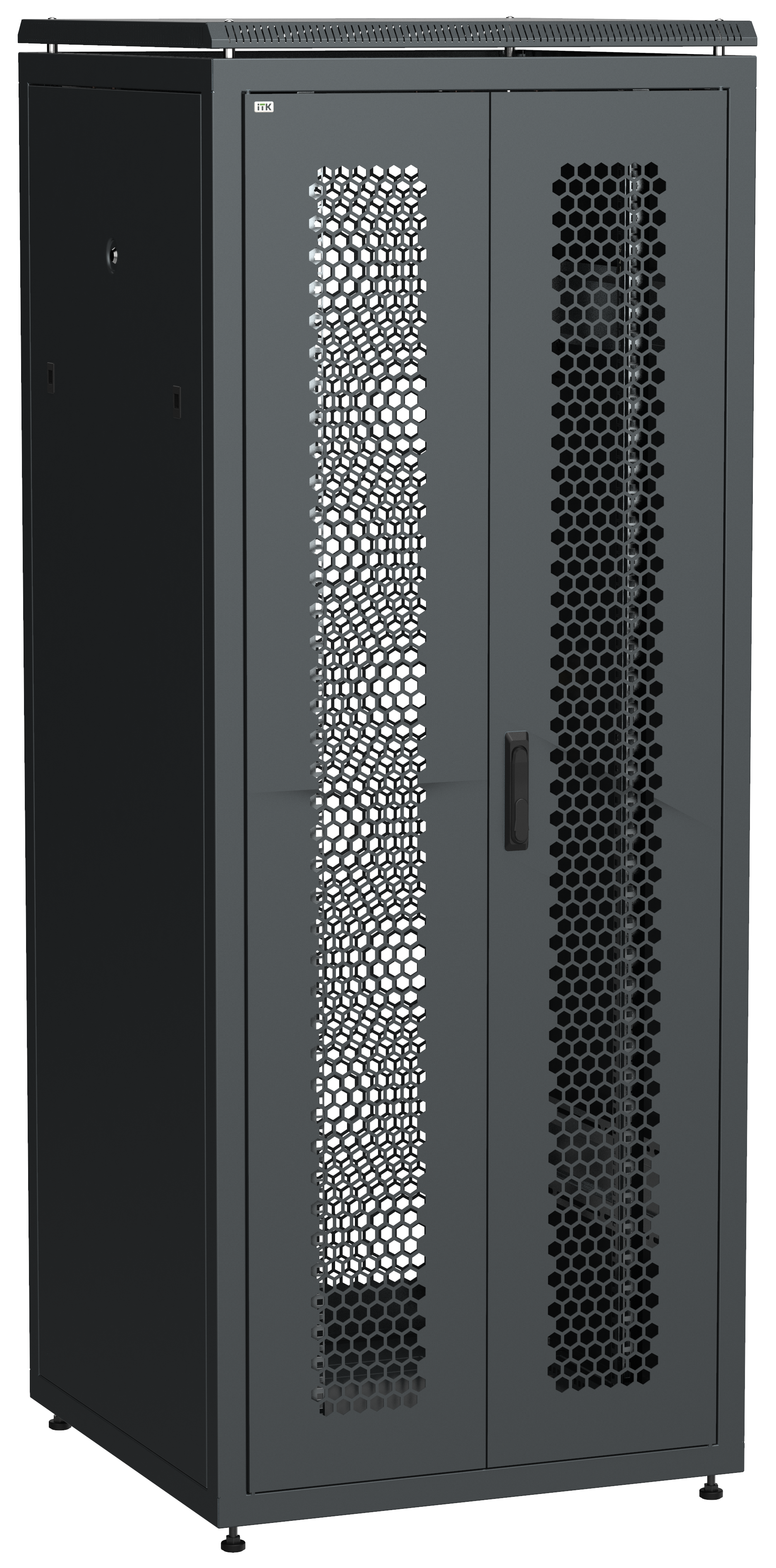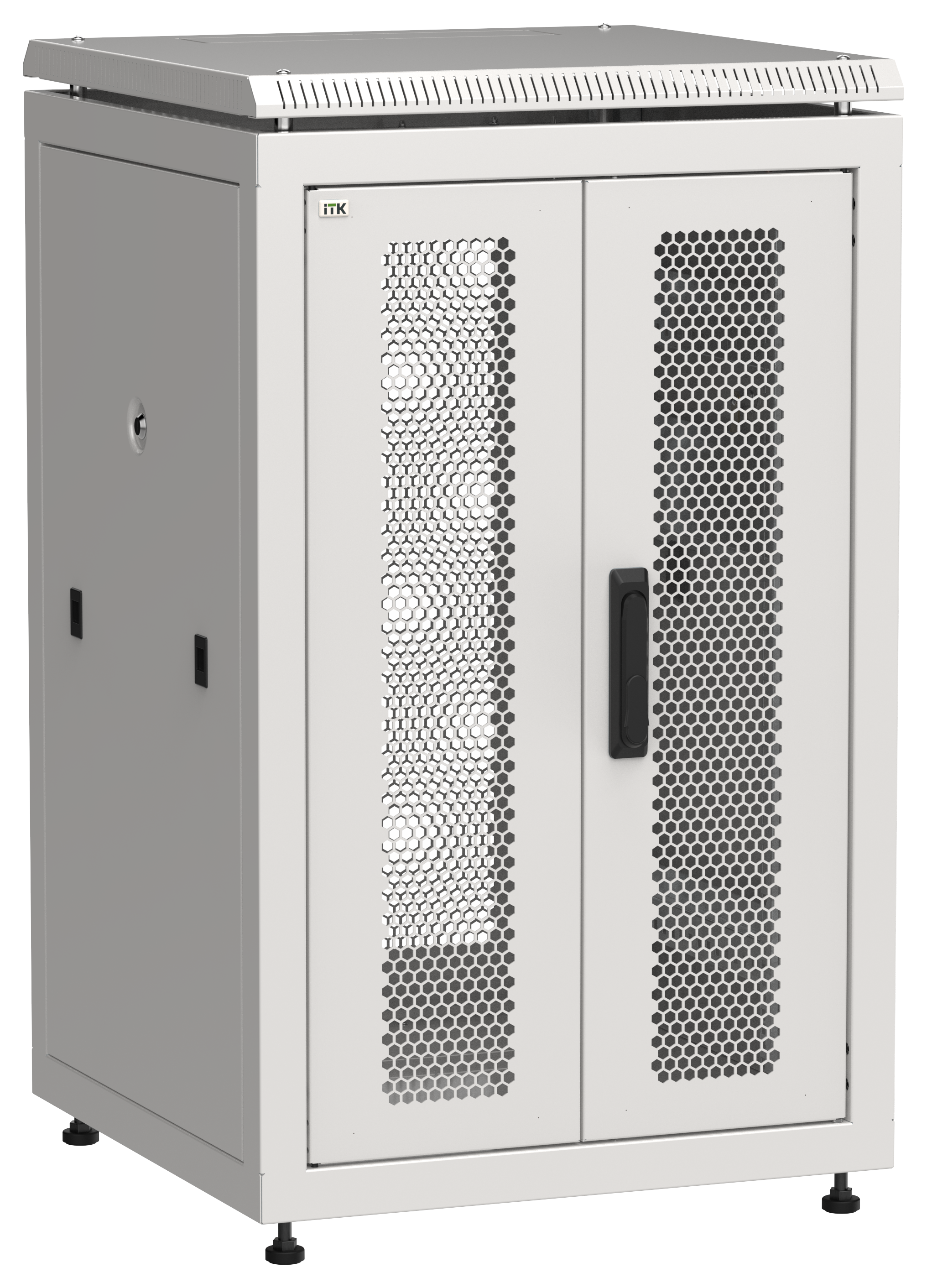 Дверь перфорированная двустворчатая предназначена для установки в напольные 19" шкафы серии LINEA N. Дверь легкосъемная с трёхточечным запиранием (38..