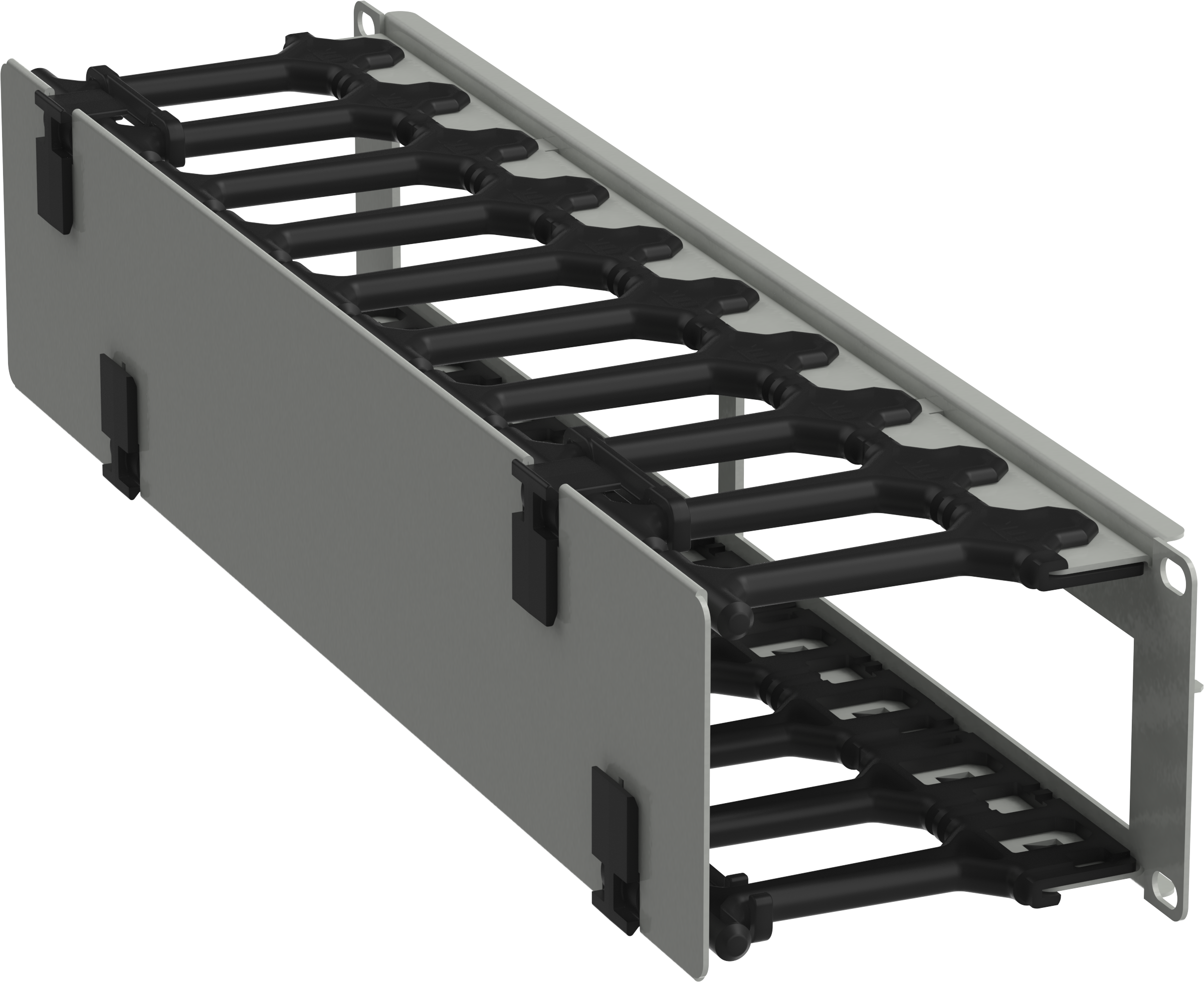 Горизонтальный кабель-органайзер с крышкой глубиной 100мм, высотой 2U предназначен для установки в телекоммуникационные конструктивы стандарта 19". И..