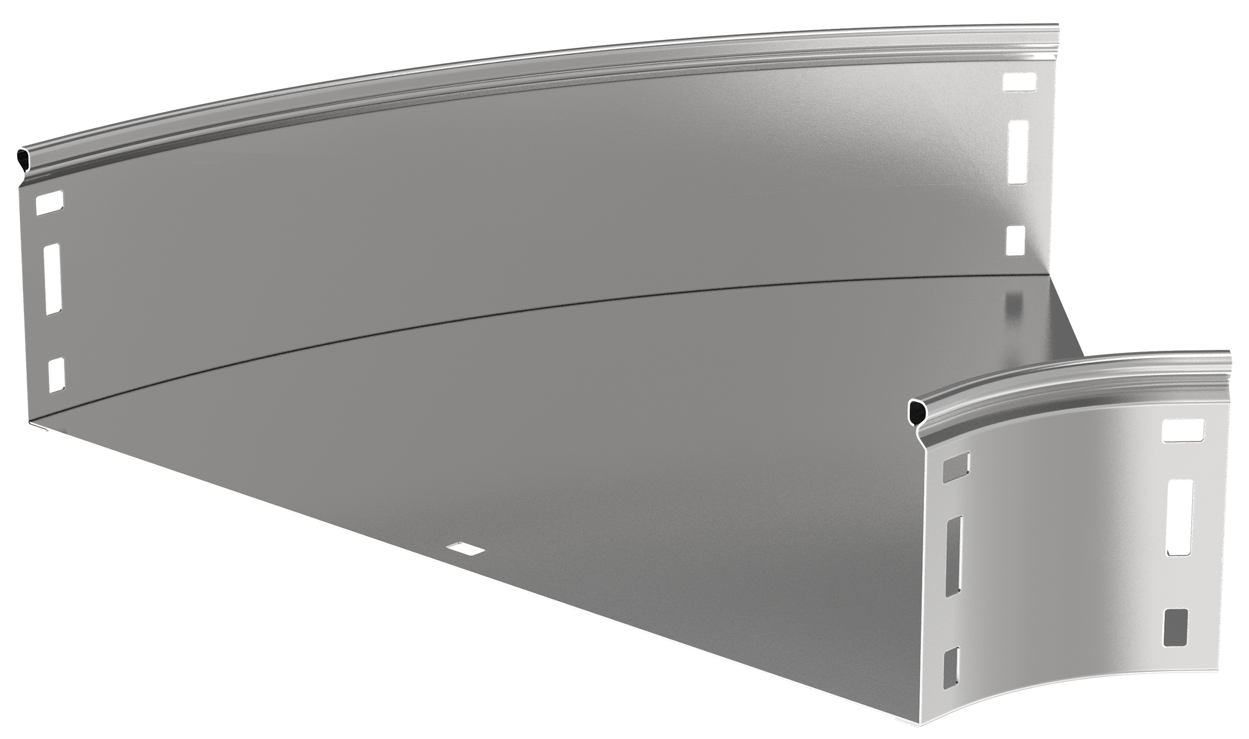 Применяется для организации поворота кабельной трассы на 90° в горизонтальной плоскости с радиусом поворота 300 мм. Изготавливается из рулонной холодн..