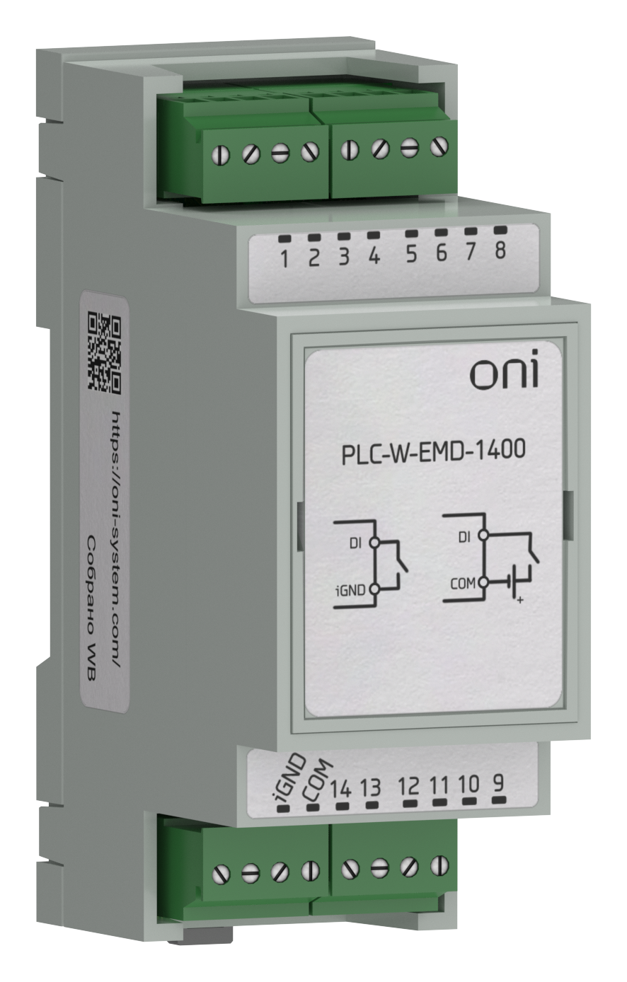 Модуль расширения входов/выходов для контроллеров PLC-W 14 DI входов типа "сухой контакт" с групповой гальванической развязкой.ПреимуществаГальваничес..