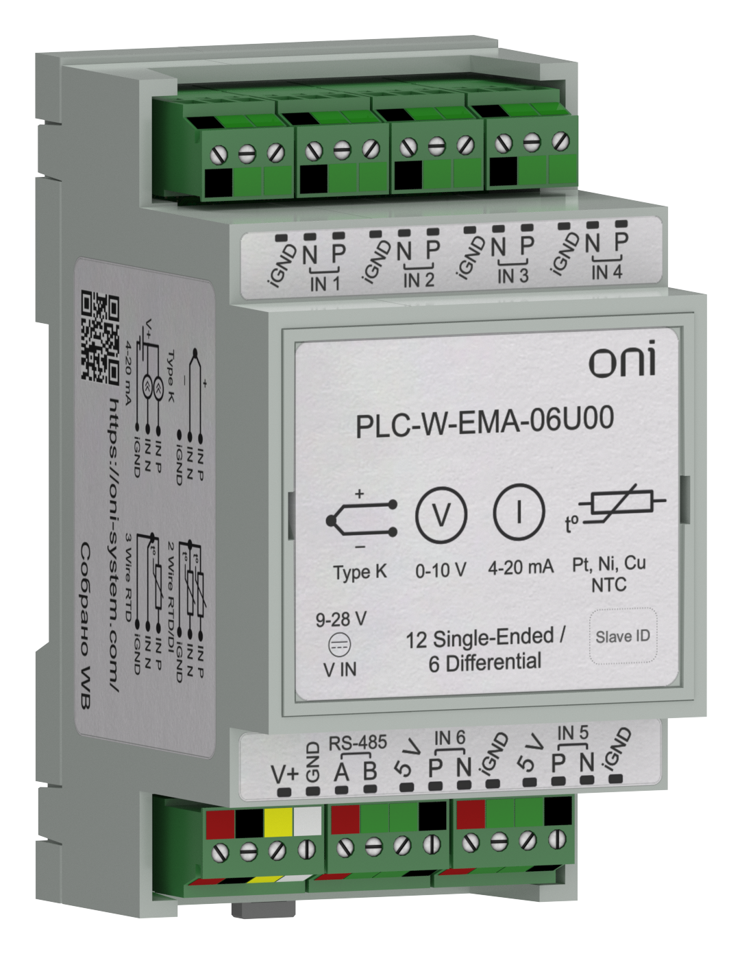 Модуль расширения входов/выходов для контроллеров PLC-W. 6 AI входов для измерения термосопротивлений, преобразования сигналов датчиков с унифицирован..