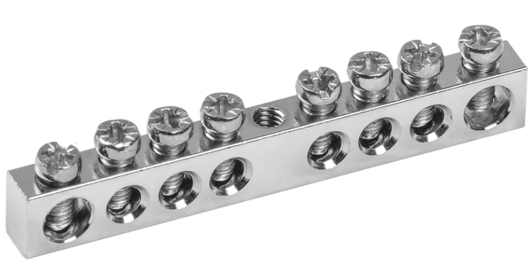 Применяются в щитовом оборудовании для подсоединения нулевых рабочих (N) и нулевых защитных проводов (РЕ). Крепление шины предусмотрено по центру (тип..