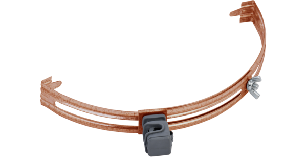 Держатель проводника круглого 6 – 8 мм для конька товарного знака IEK используется для закрепления прутка молниезащитной сетки на коньке скатной кровл..
