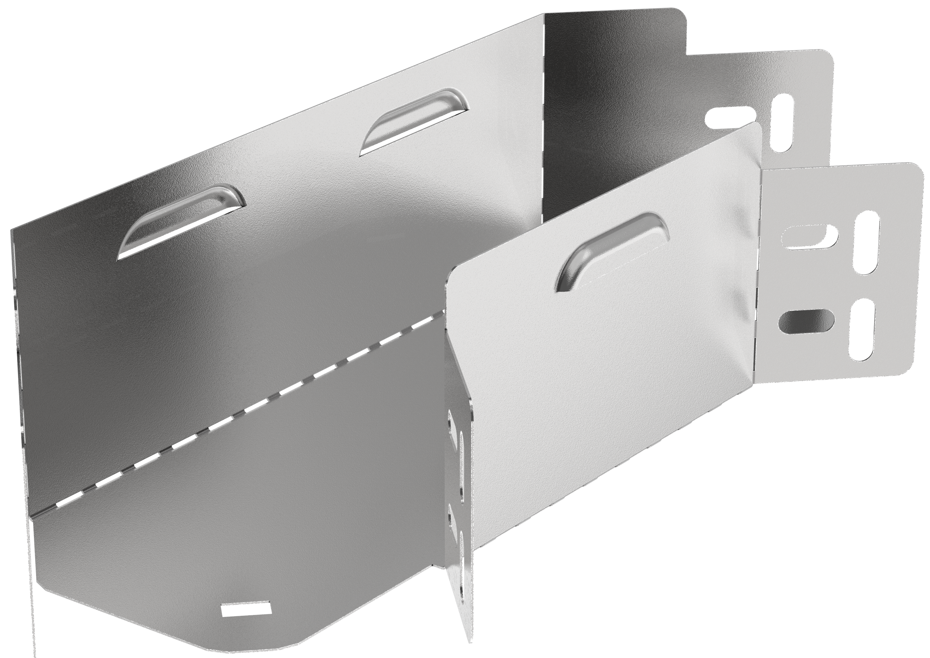 Поворот горизонтальный на 90° предназначен для организации поворота кабельной трассы в горизонтальной плоскости. Аксессуар поставляется в плоском вид..
