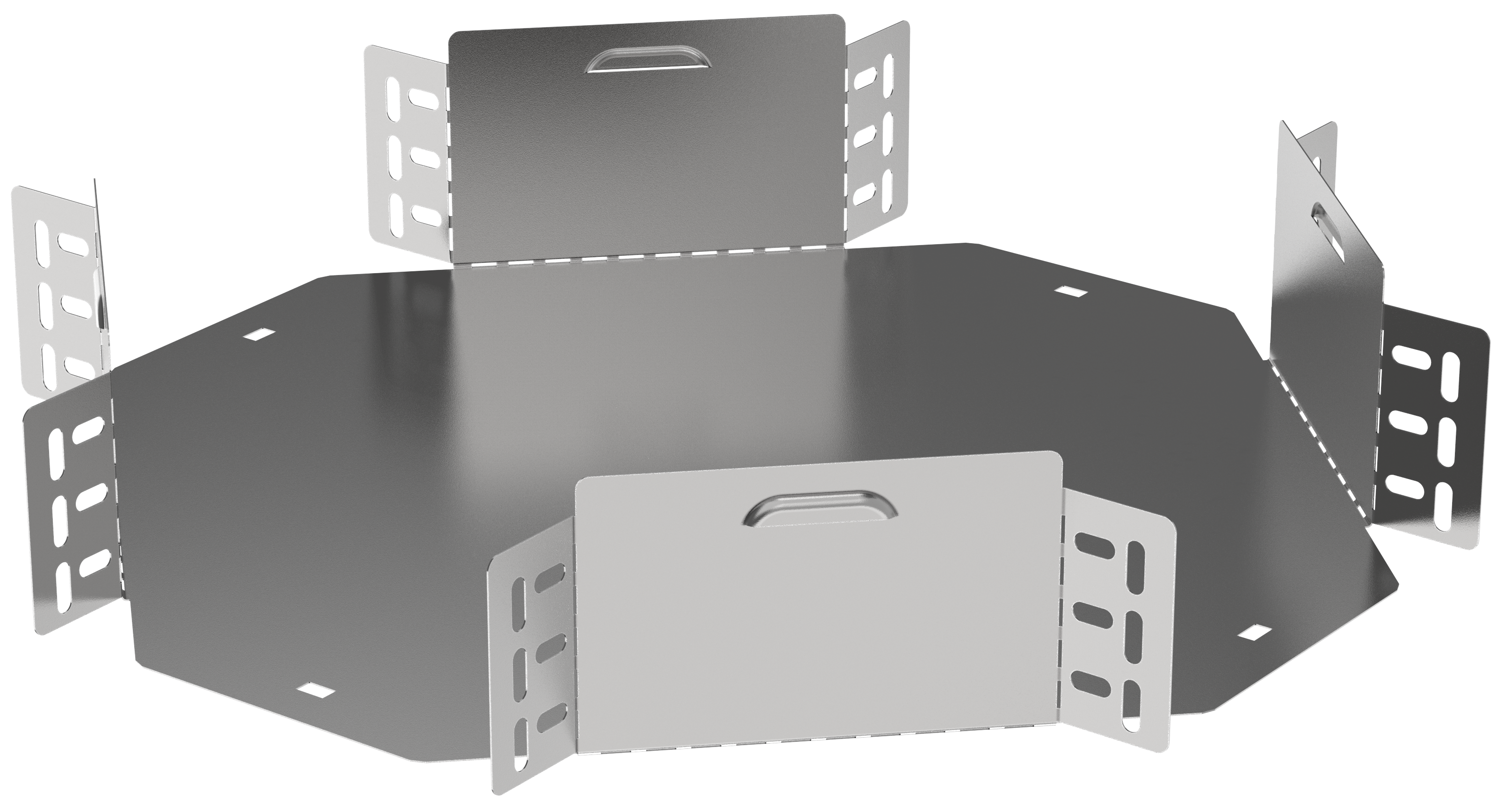 Крестовина предназначен для организации X-образного разветвления кабельной трассы в горизонтальной плоскости. Аксессуар поставляется в плоском виде, ..