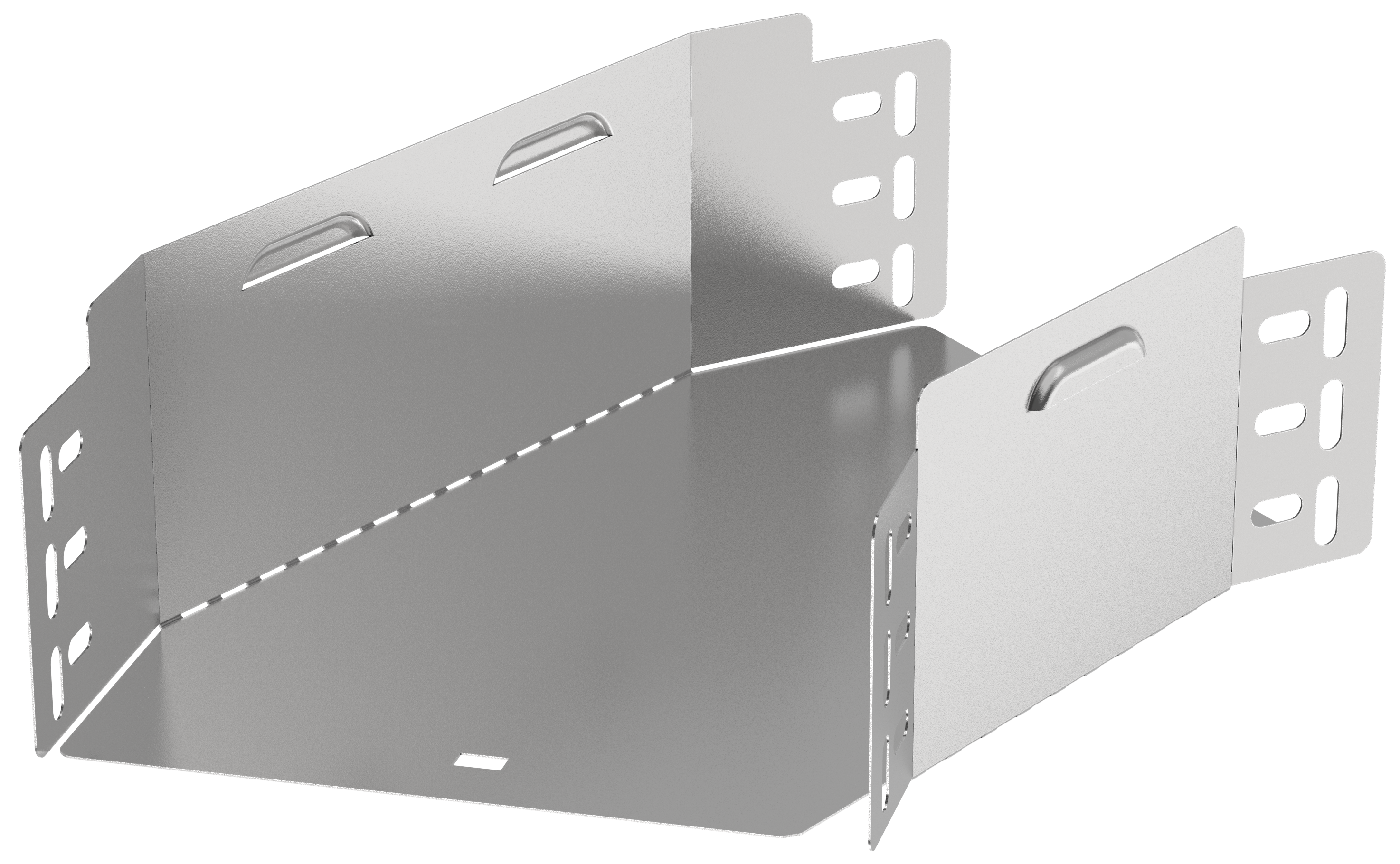 Отвод Т-образный горизонтальный предназначен для организации Т-образного или X-образного отвода кабельной трассы в горизонтальной плоскости. Стыковка ..