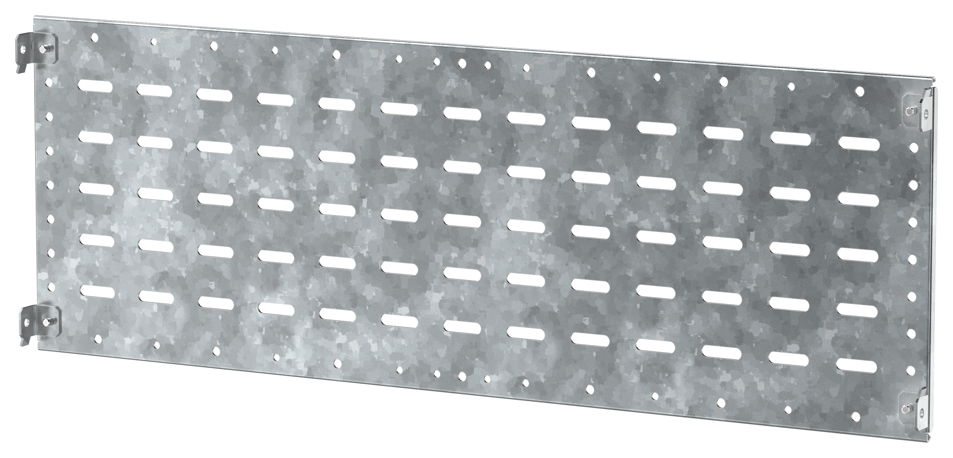 Применяется для дополнительной защиты кабеля в лотке и предотвращения провисания слаботочных кабелей.ПреимуществаРисунок перфорации донной вставки обе..
