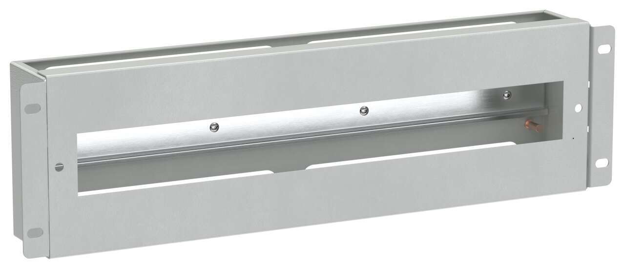 Панель электрораспределительная предназначена для размещения модульного электротехнического оборудования в 19” шкафах и имеет вырез 19" высотой 3U с у..