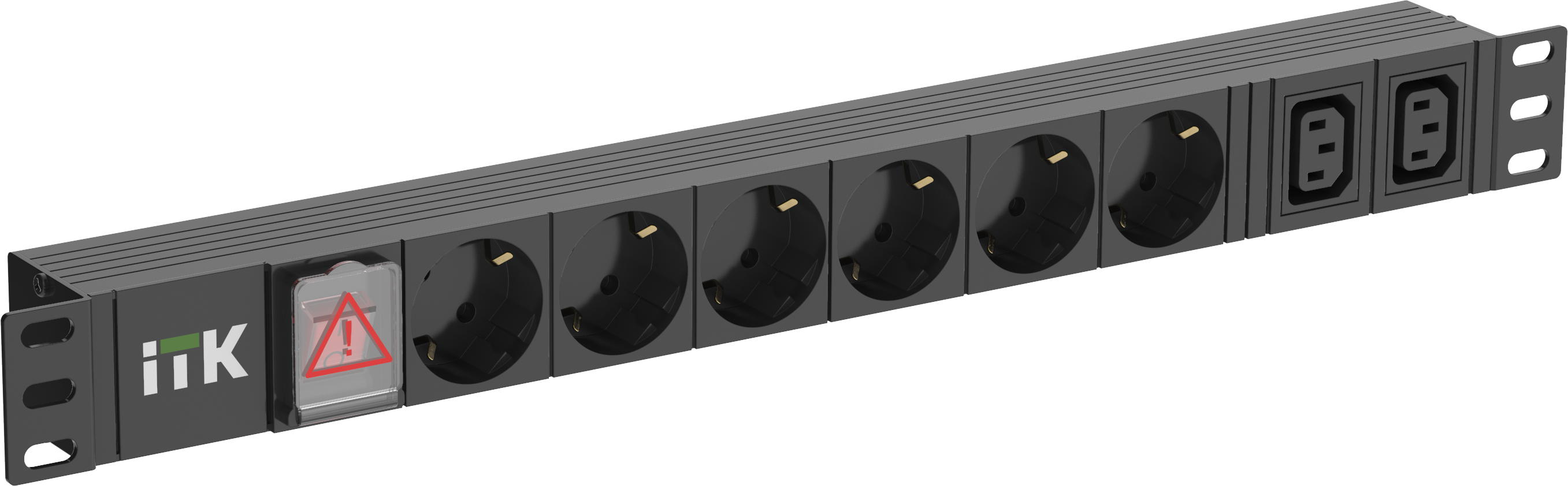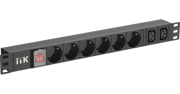 Горизонтальный комбинированный алюминиевый 19" PDU ITK включает в себя розетки двух типов: 6 розеток Schuko и 2 розетки C13 – что позволяет подключать..