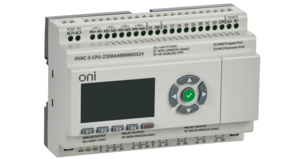 Модуль ЦПУ микро ПЛК ONI с возможностью расширения количества каналов ввода-вывода и коммуникаций с помощью модулей расширения ONI PLR-S. С интегриров..
