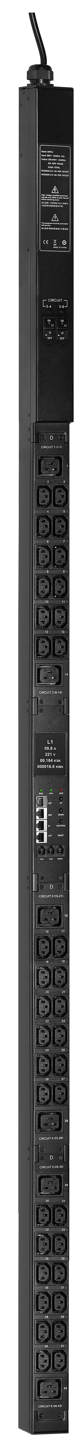Блок распределения питания (PDU) с функцией удаленного мониторинга по каждой розетке предназначен для распределения питания в телекоммуникационных шка..