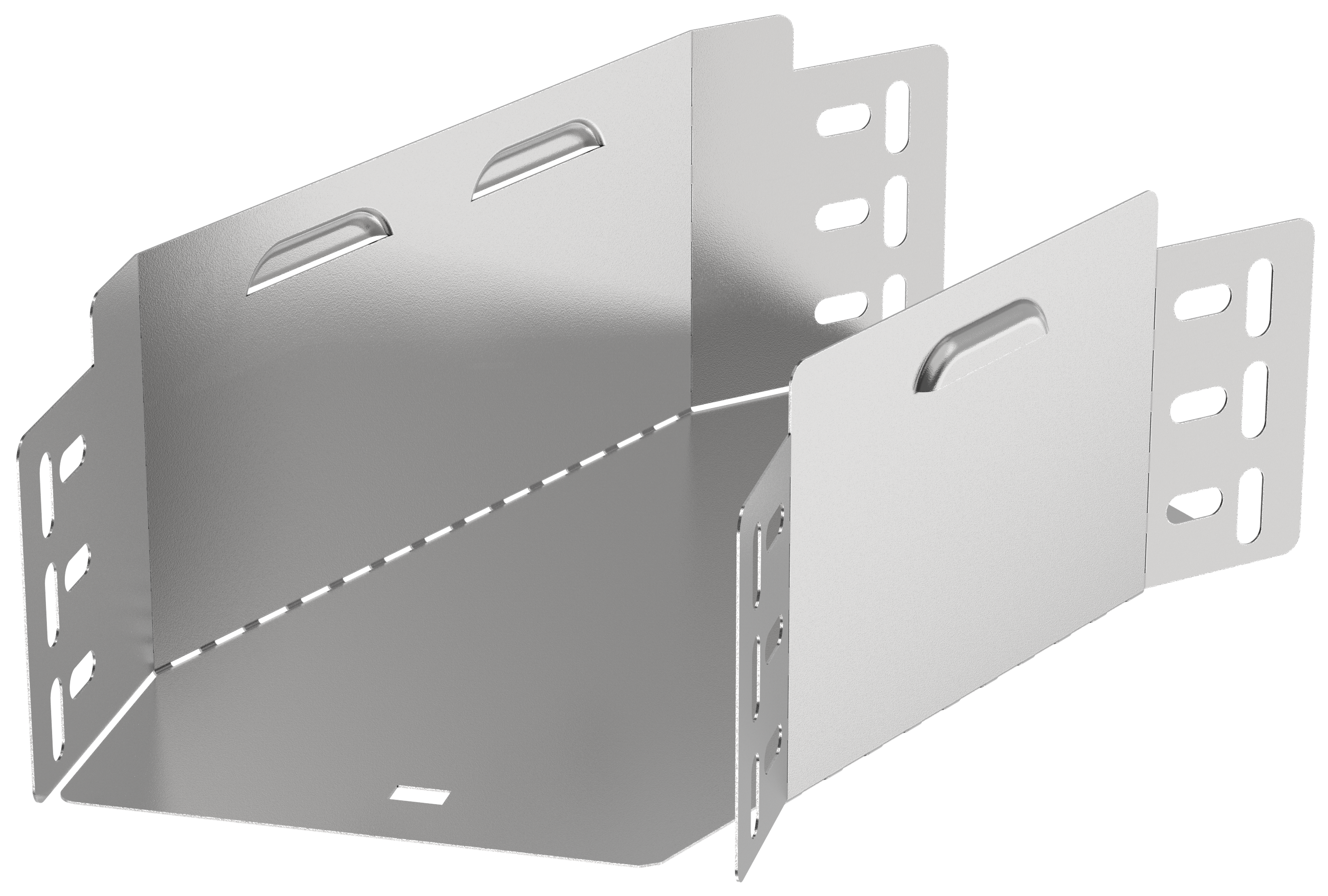 Отвод Т-образный горизонтальный предназначен для организации Т-образного или X-образного отвода кабельной трассы в горизонтальной плоскости. Стыковка ..