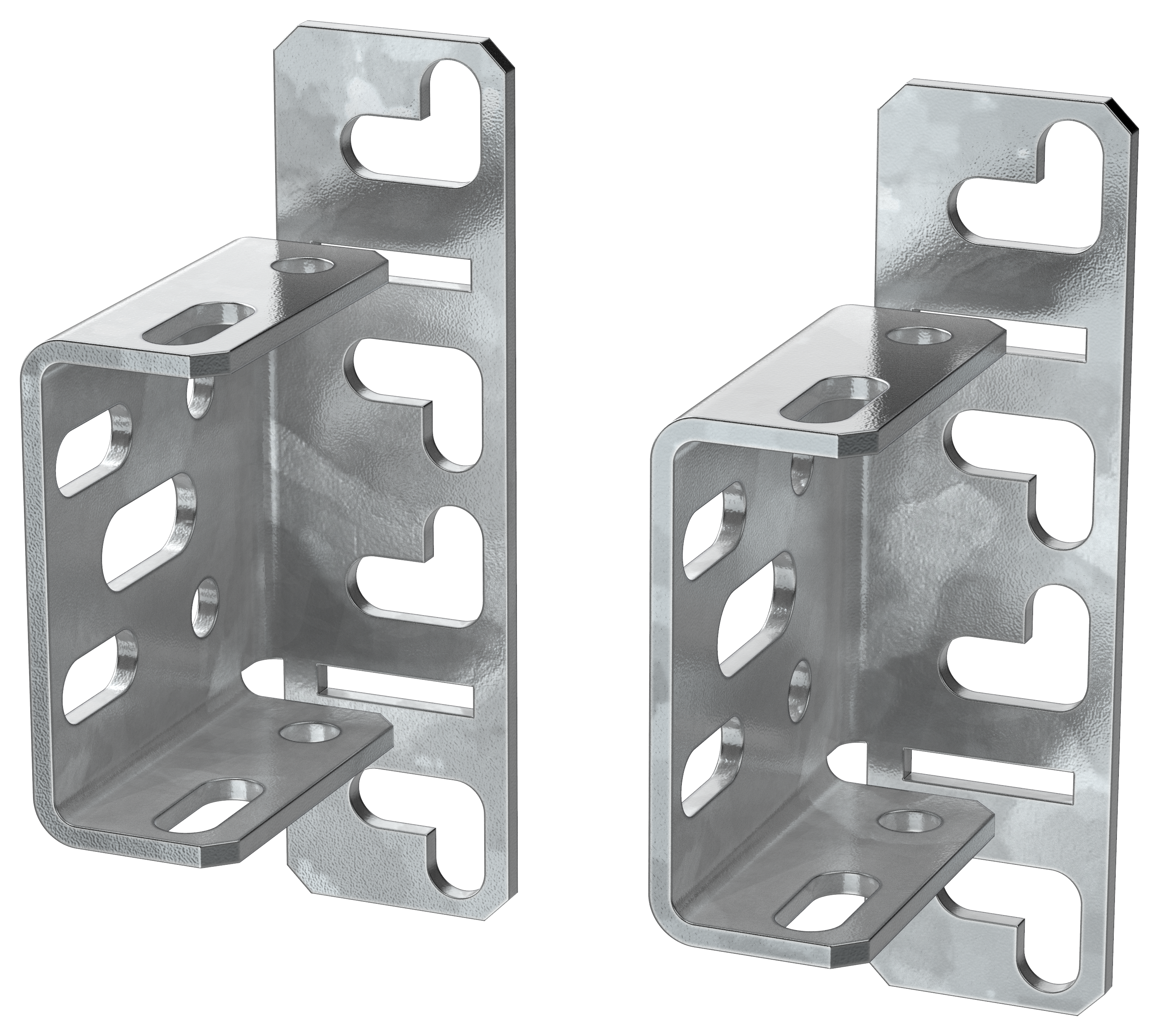 Специализированный кронштейн для крепления монтажного профиля 50х25.ПреимуществаУдобство монтажа.Регулировочные отверстия в двух плоскостях.Усиленный ..