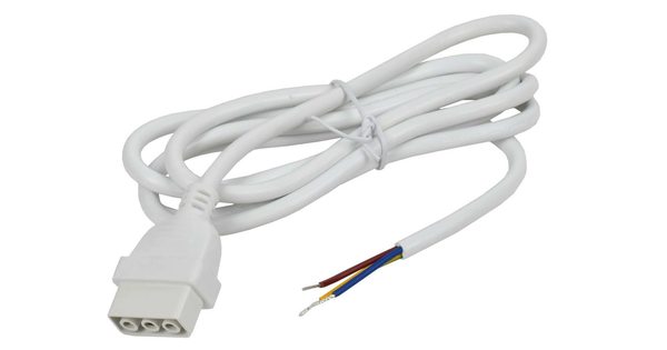 Кабель питания белого цвета с сечением проводников 3*0,75. Длина кабеля составляет 1,5 м. Применяется для подключения к сети линейных светильников сер..