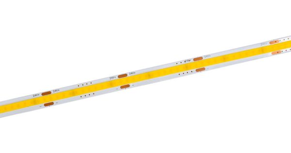 Низковольтная светодиодная лента 24 В COB с количеством 312 светодиодов на 1 м торговой марки IEK позволяет создавать декоративное освещение мебели, н..