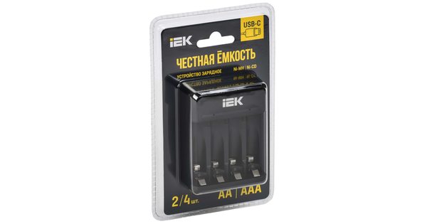 Зарядное устройство IEK обеспечивает быструю и безопасную зарядку любых никель-металлогидридных и никель-кадмиевых аккумуляторов размера «АА» и «ААА»...
