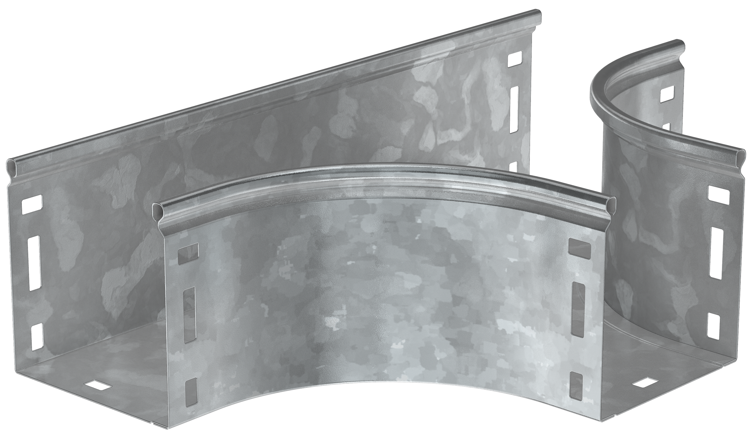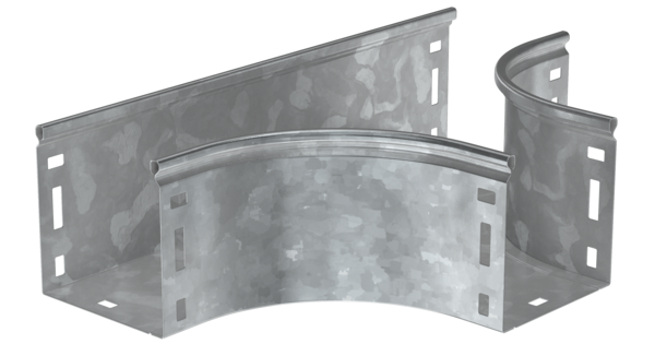 Поворот горизонтальный на 90° предназначен для организации поворота кабельной трассы в горизонтальной плоскости. Аксессуар поставляется в плоском вид..
