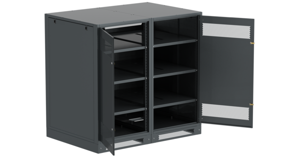 Дверь перфорированная двустворчатая предназначена для установки в напольные 19" шкафы серии LINEA N. Дверь легкосъемная с трёхточечным запиранием (38..