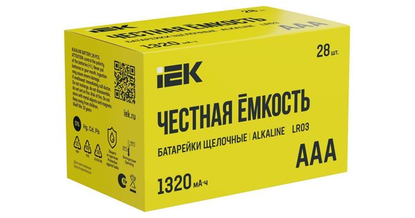 Батарейки щелочные мизинчиковые IEK AAA / LR03, 28 шт. в картонном боксе. IEK применяет технологии, которые позволяют создать батарейки с длительным в..