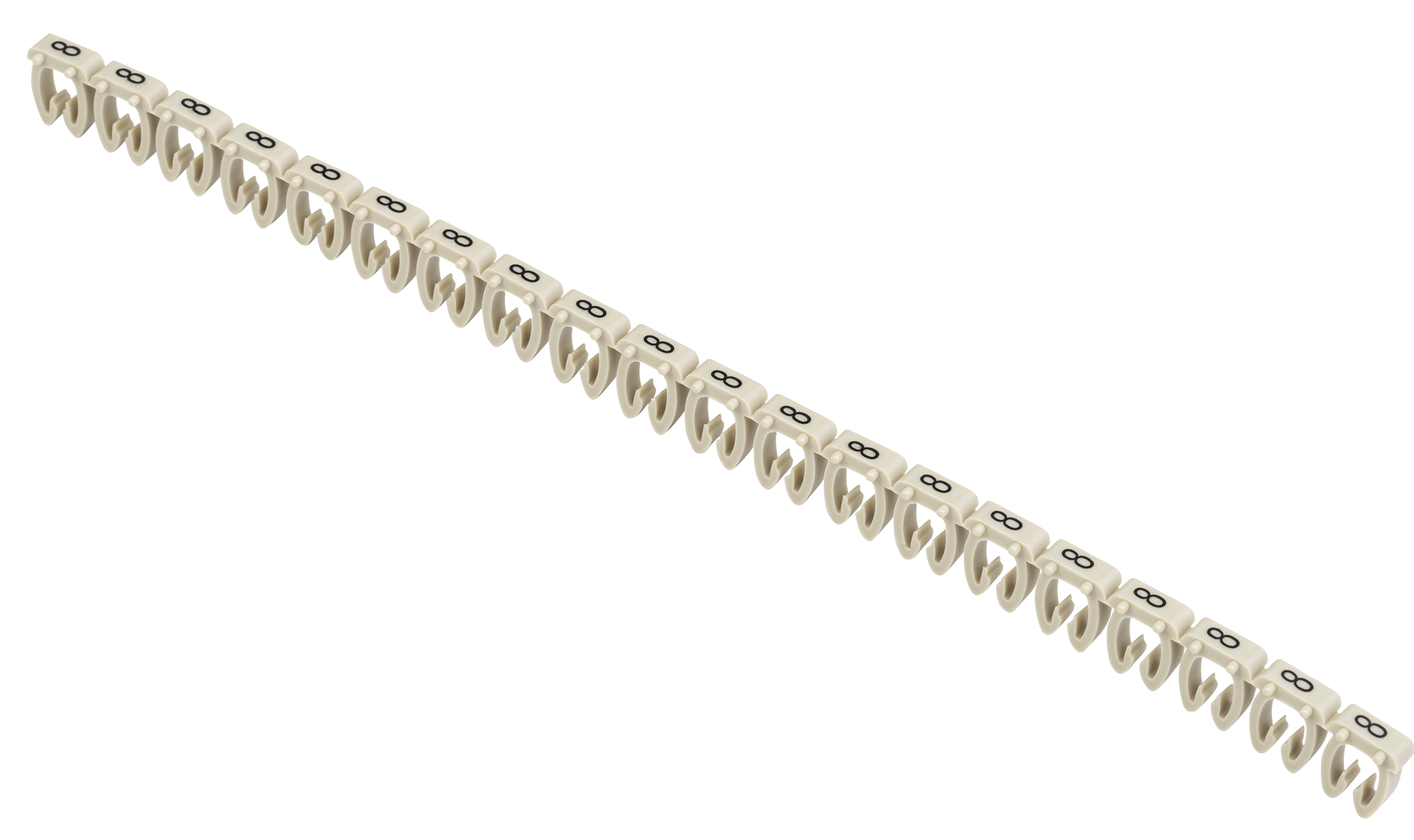 Маркер кабельный открытого профиля типа KE предназначен для цифровой и цветовой маркировки проводов и кабелей сечением 4-6мм2. Изготовлен из эластично..
