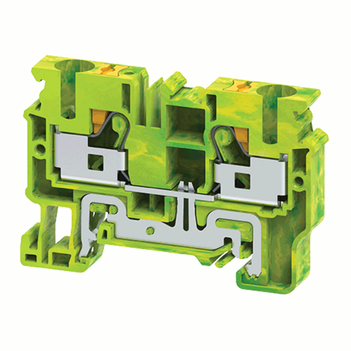 Заземляющая клемма типа push-in на номинальное сечение проводника 10 кв. мм. Клеммы заземляющие с выводами безвинтового типа с зажимами типа push-in с функцией PE предназначены для электрического и механического соединения медных проводников с DIN-рейкой в распределительных шкафах и щитах САУ. Клеммы позволяют легко присоединить круглые медные проводники, номинальным сечением 10 кв.мм, обеспечивая надежный контакт и простоту сборки электрических схем.4600572566988