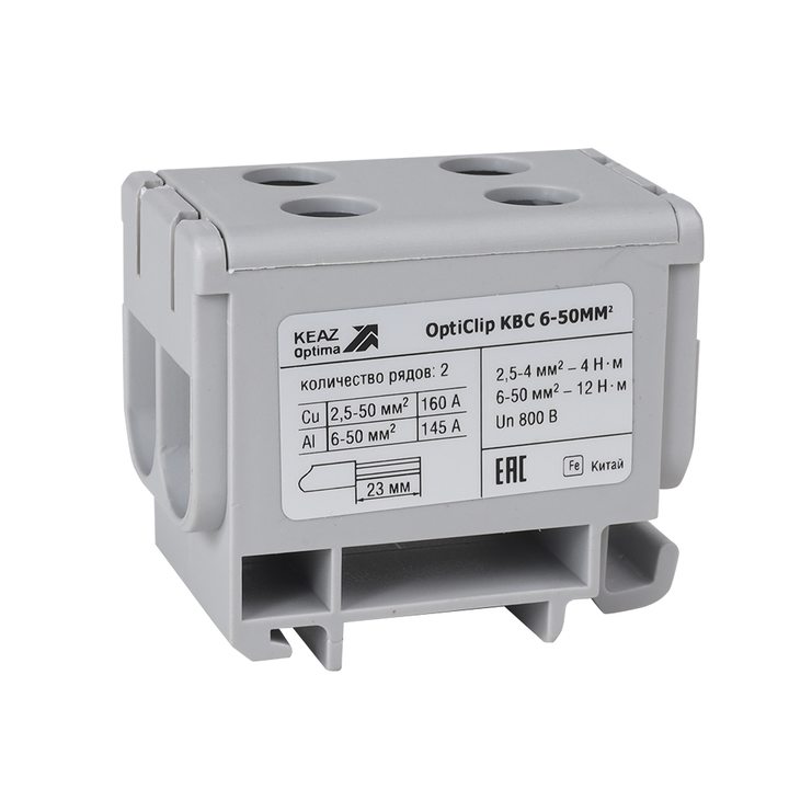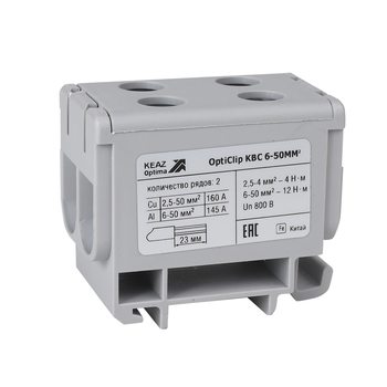 Клемма вводная силовая двойная OptiClip КВС 6-50 серая