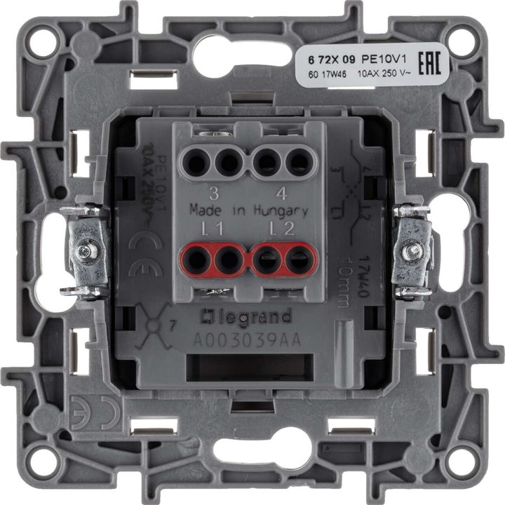 - Острые крепёжные лапки с широким углом раскрытия, обеспечивают надёжную фиксацию в монтажной коробке.