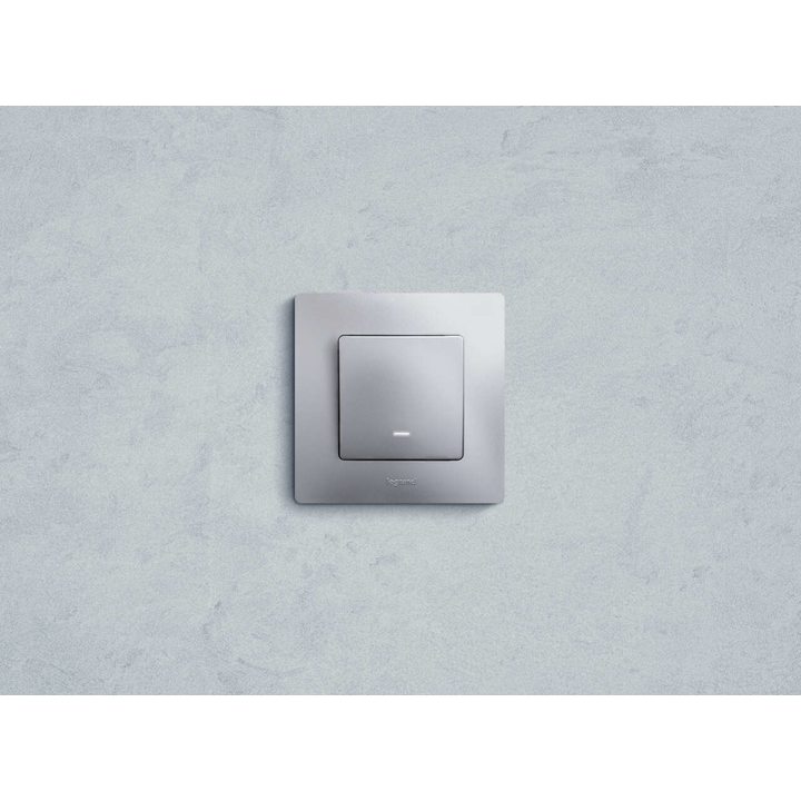 Механизм выключателя 1-кл. СП Etika 10А IP20 250В 10AX с подсветкой/индикацией безвинт. зажимы алюм. Leg 672403