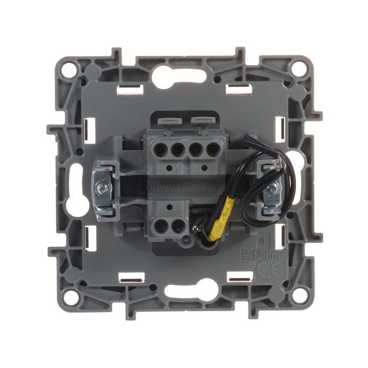- Благодаря изменяемой схеме подключения, лампа подсветки либо облегчает ориентирование в темноте, либо информирует о включении нагрузки.