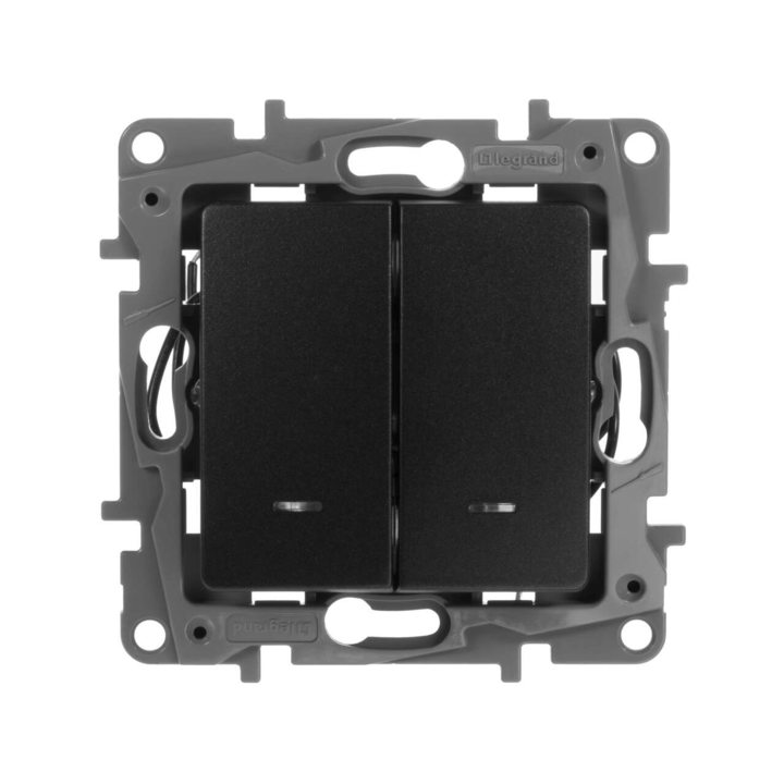 Механизм выключателя 2-кл. СП Etika 10А IP20 250В 10AX с подсветкой / индикацией авт. зажимы антрацит Leg 672604